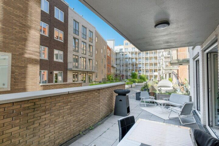 Het terras is direct gelegen aan de binnentuin met behoud van privacy. Bovendien hou je vanaf het terras gemakkelijk een oogje in het zeil als de kinderen op de binnenplaats spelen.